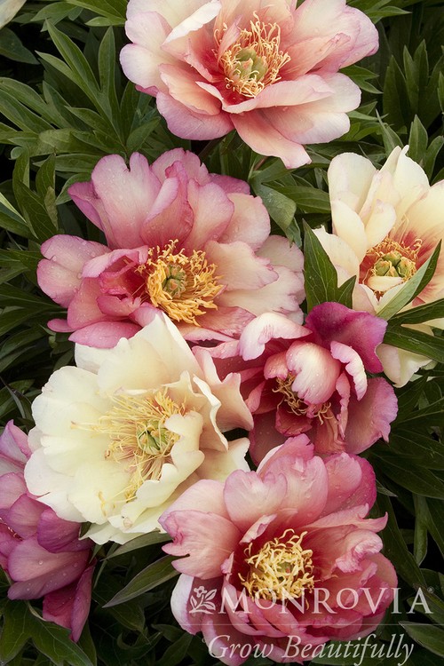 Itoh hybrid peonies are slightly larger growing than garden peonies and will usually grow 48" tall and wide.